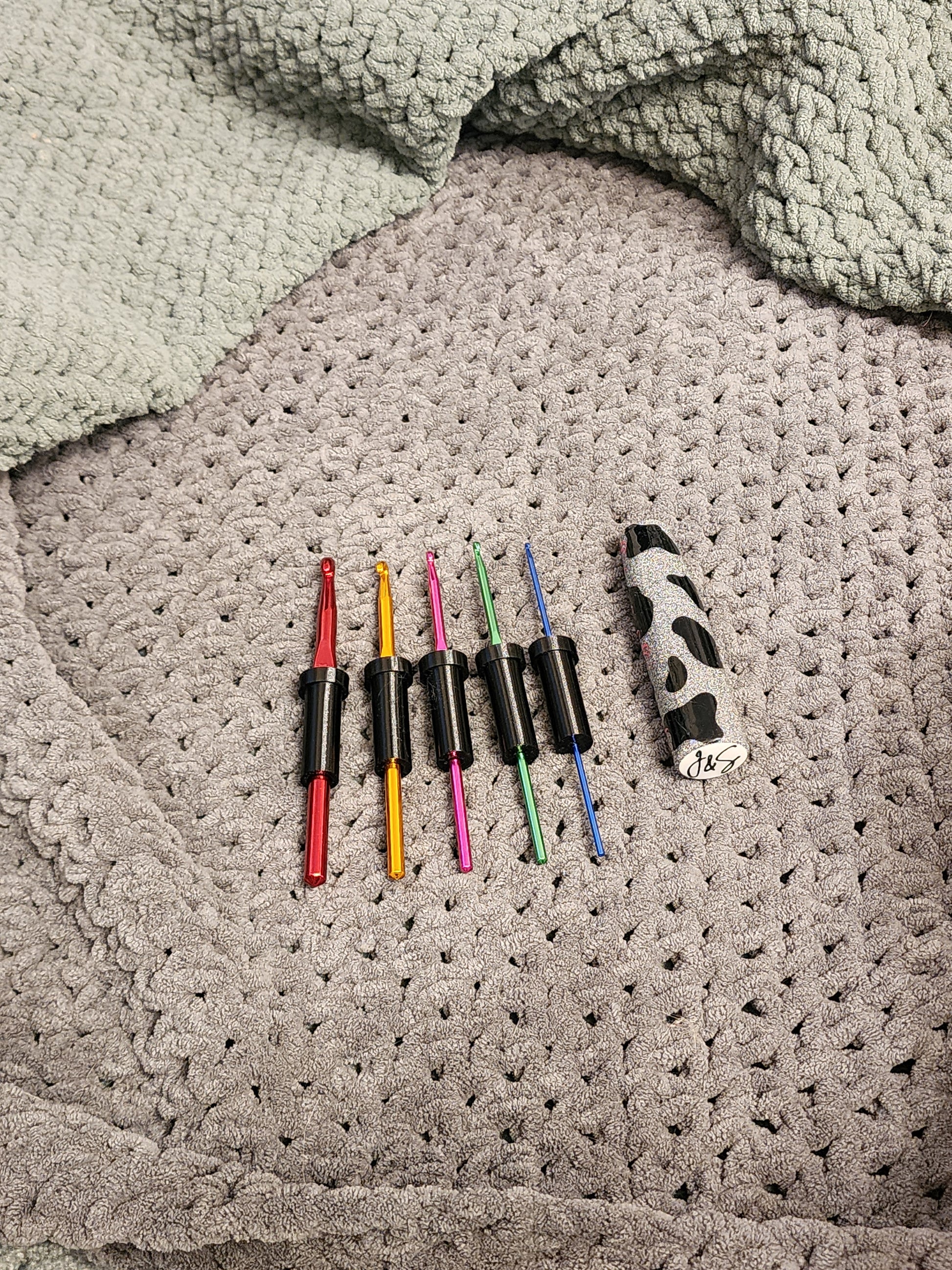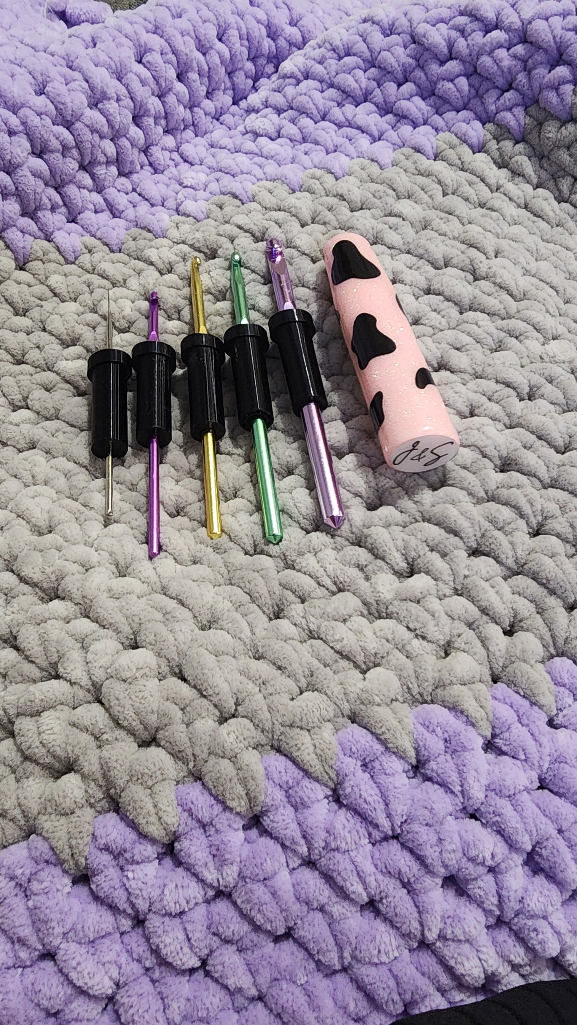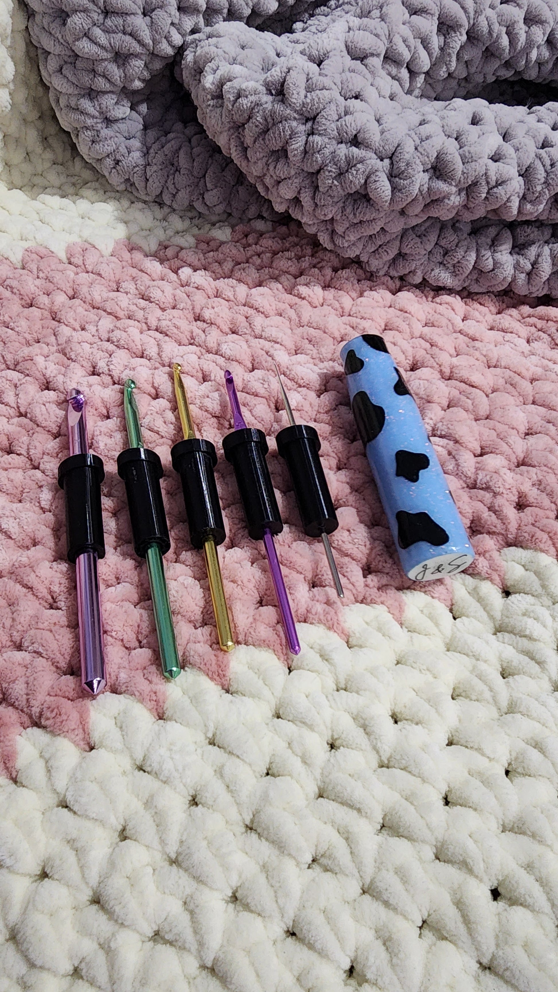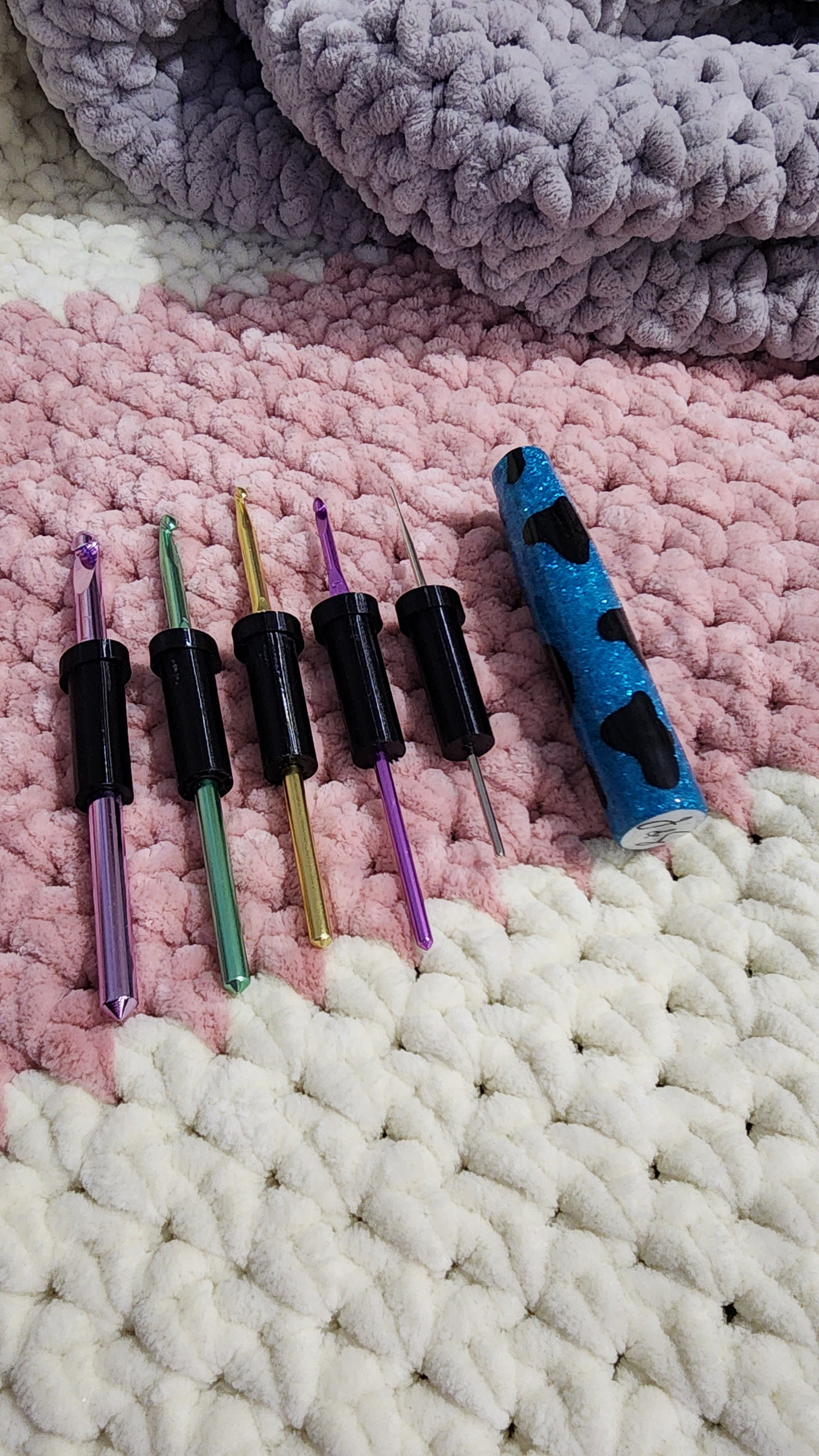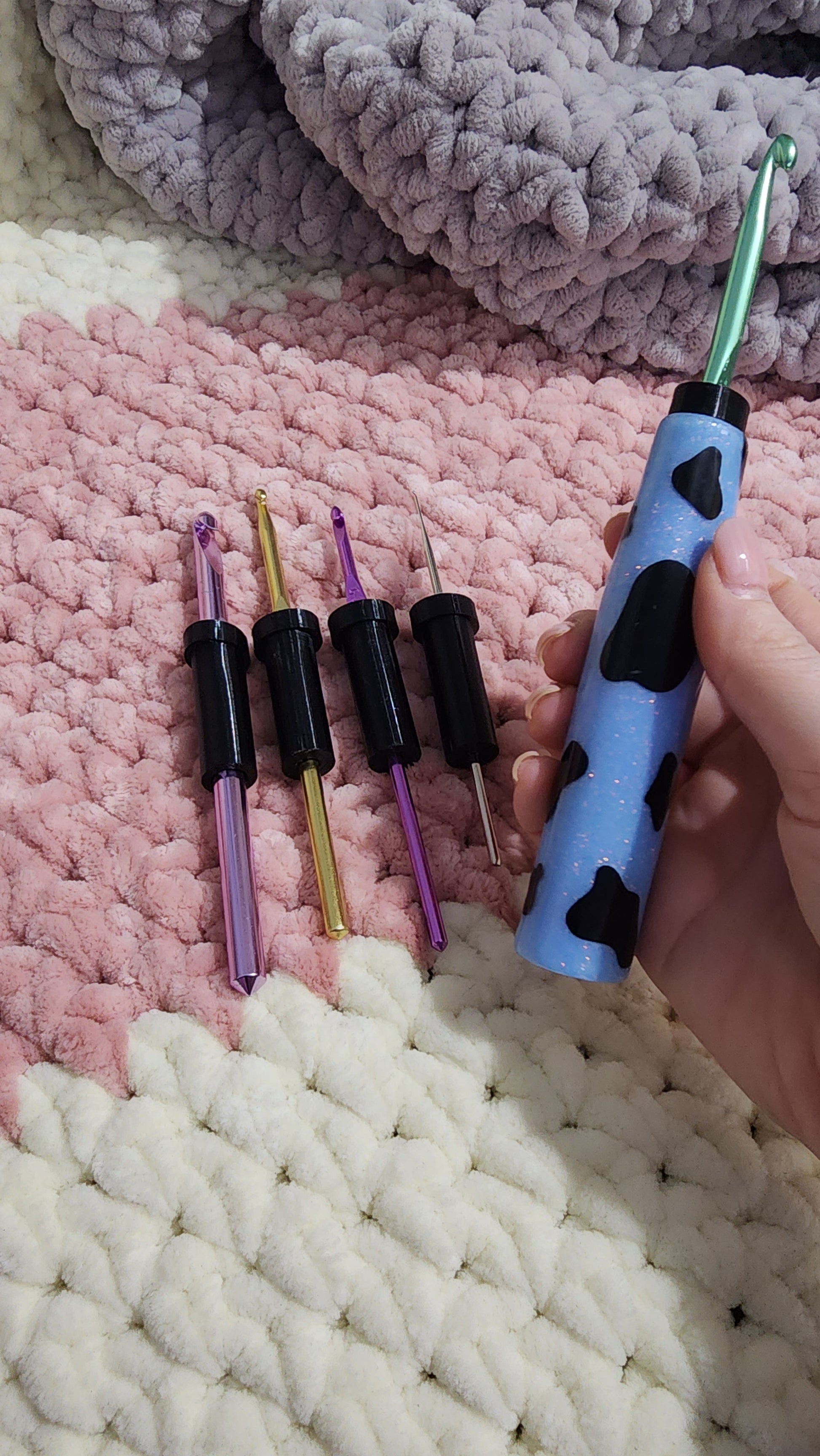 The CrogoHandle - an ERGONGOMIC CROCHET HANDLE, with inserts to fit multiple hook sizes.