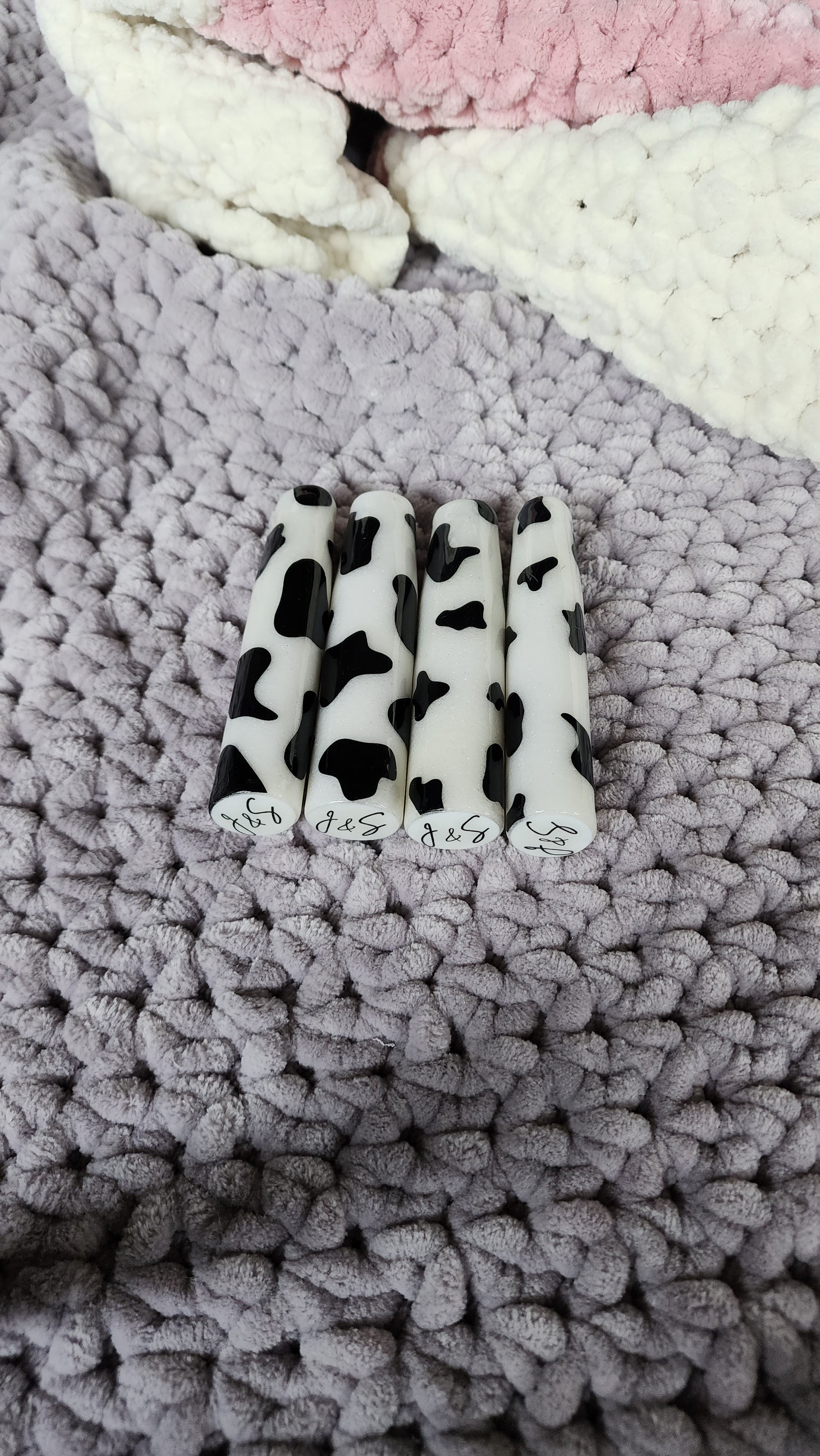 This listing is for the COW print only, please note the spots will vary, making each handle unique! Please chose the base glitter color you want for under the spots as your color option! The spots will be black unless otherwise specified.