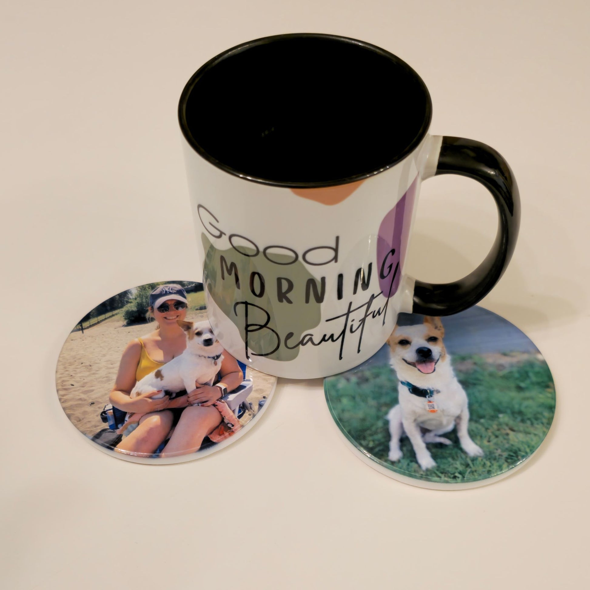 Custom Sublimated Ceramic Coasters – 3.5" Circle | Personalized Drink Coasters