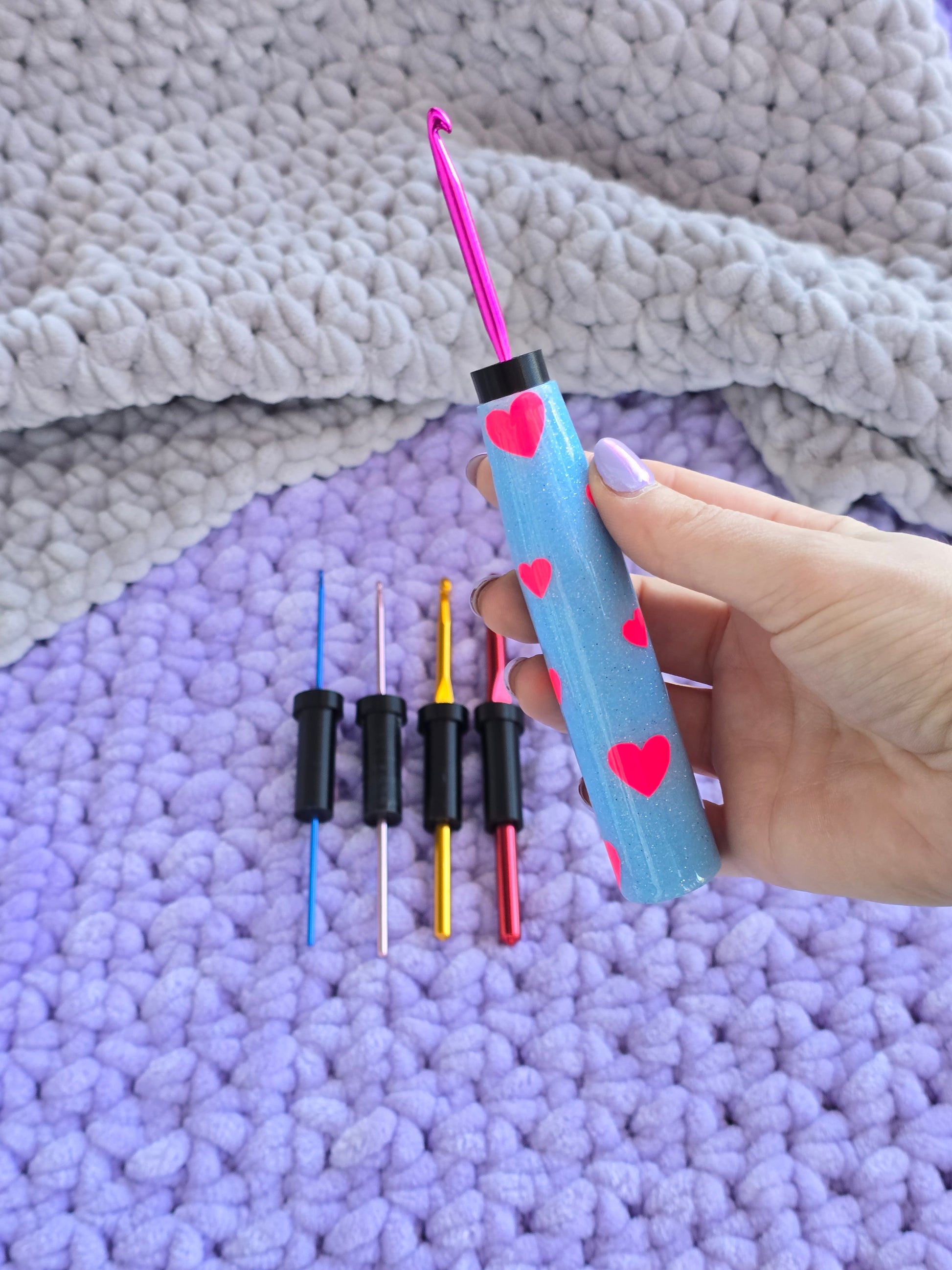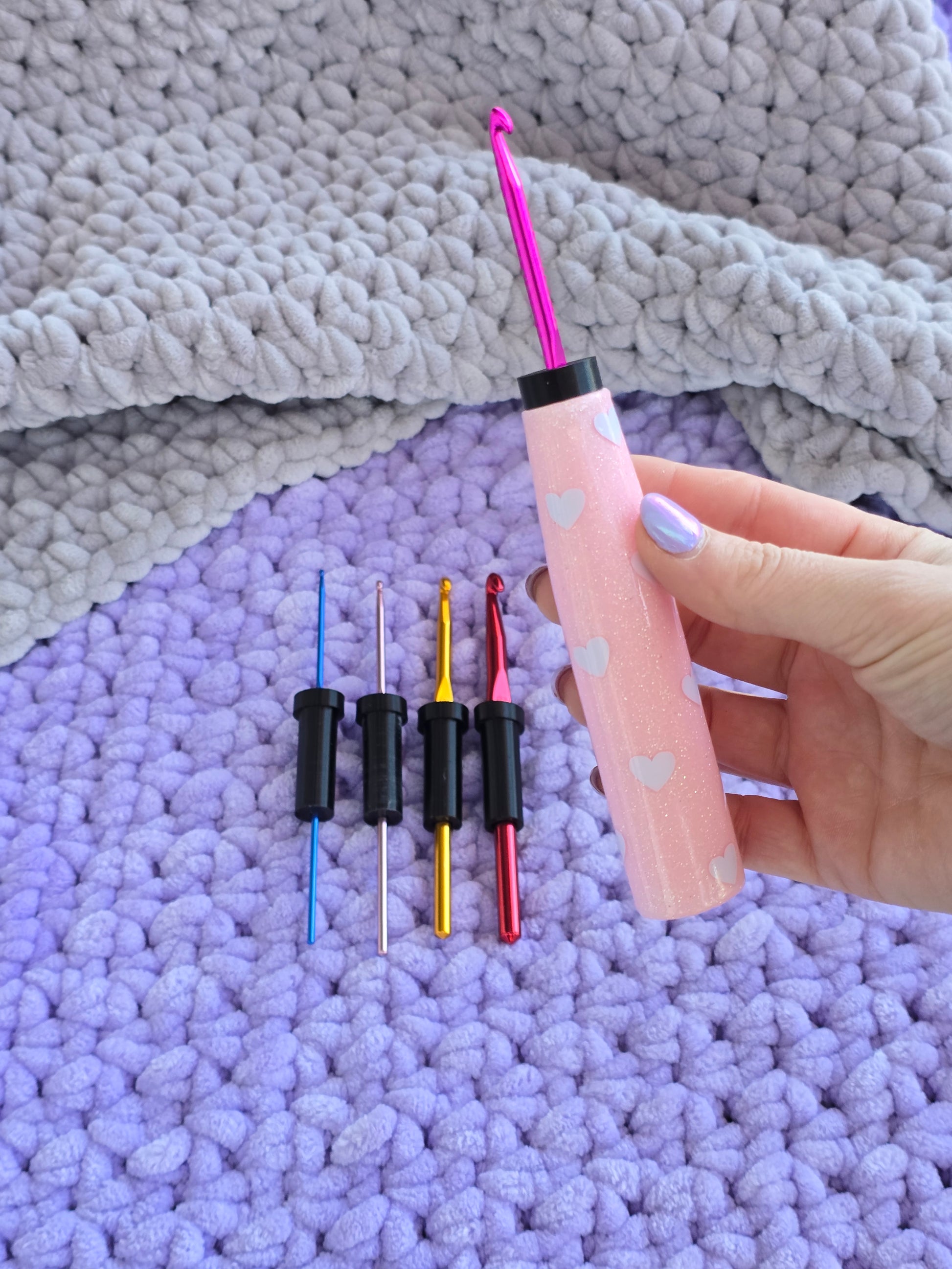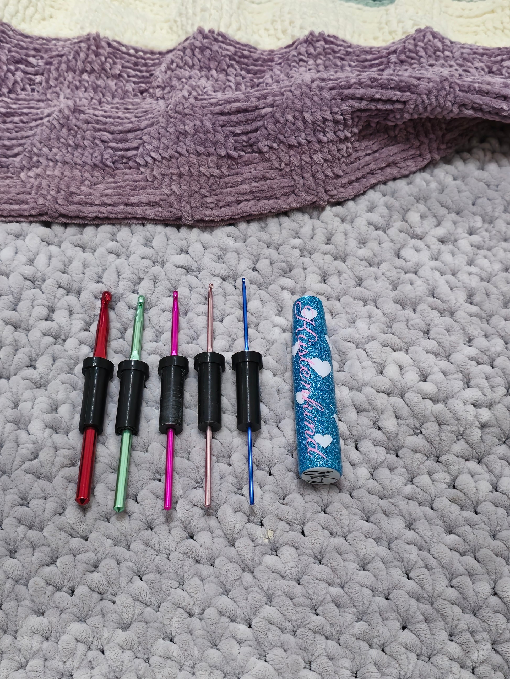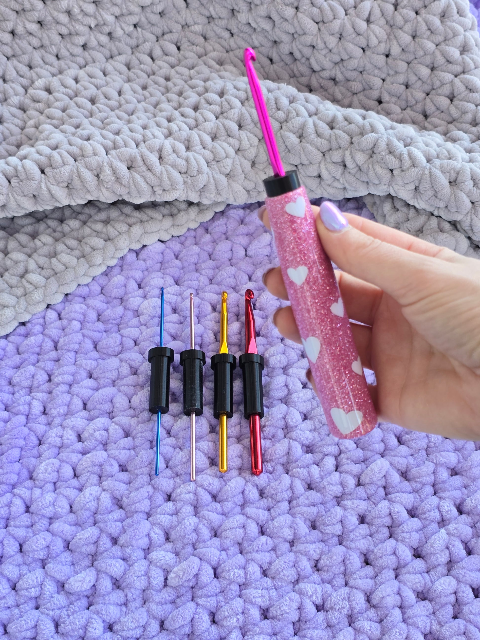 The CrogoHandle - an ERGONGOMIC CROCHET HANDLE, with inserts to fit multiple hook sizes.
