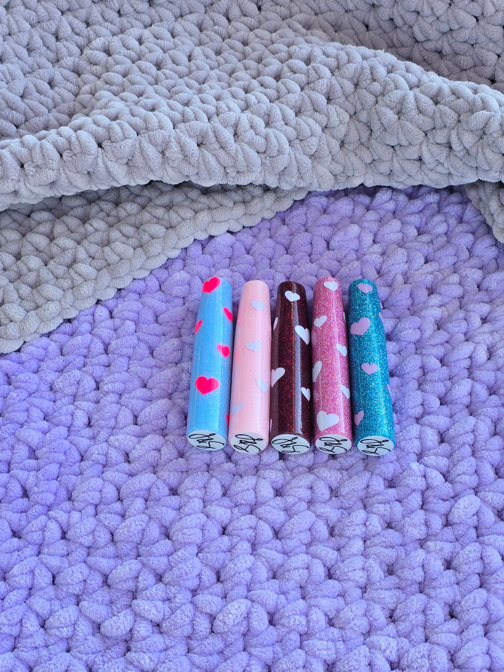This listing is for the HEART print only, please note the spots will vary, making each handle unique! Please chose the base glitter color you want for under the spots as your color option! The HEARTS will be WHITE unless otherwise specified.