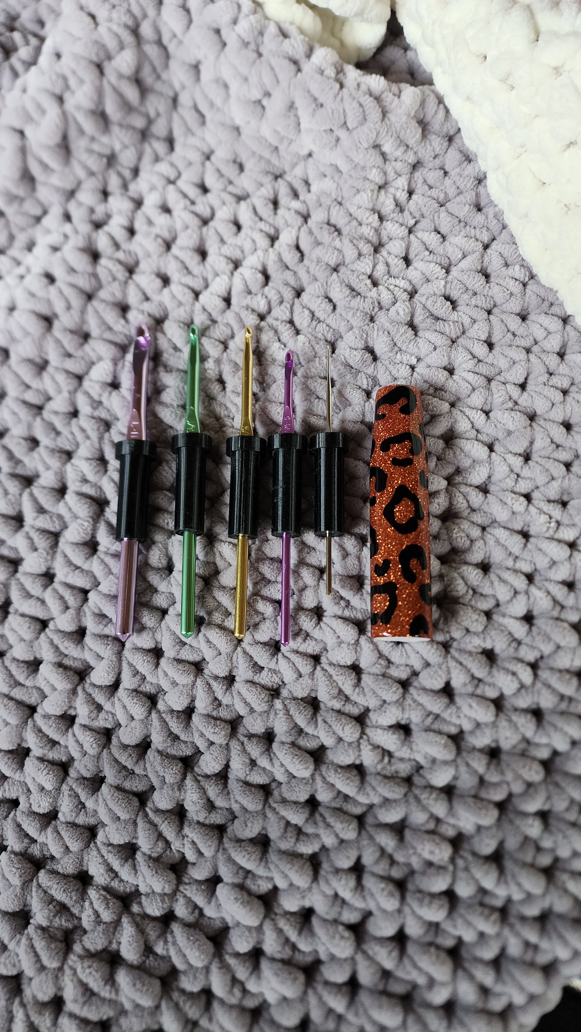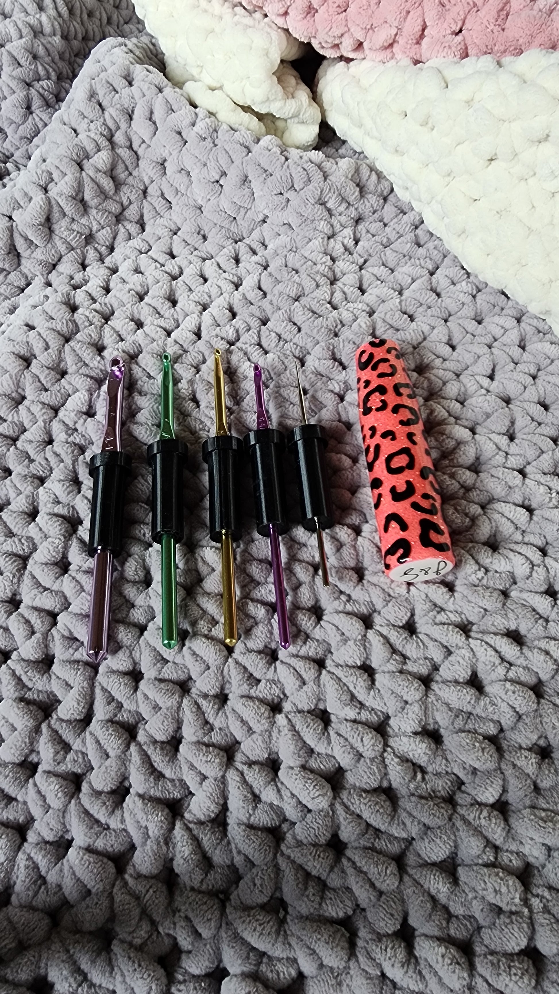 The CrogoHandle - an ERGONGOMIC CROCHET HANDLE, with inserts to fit multiple hook sizes.